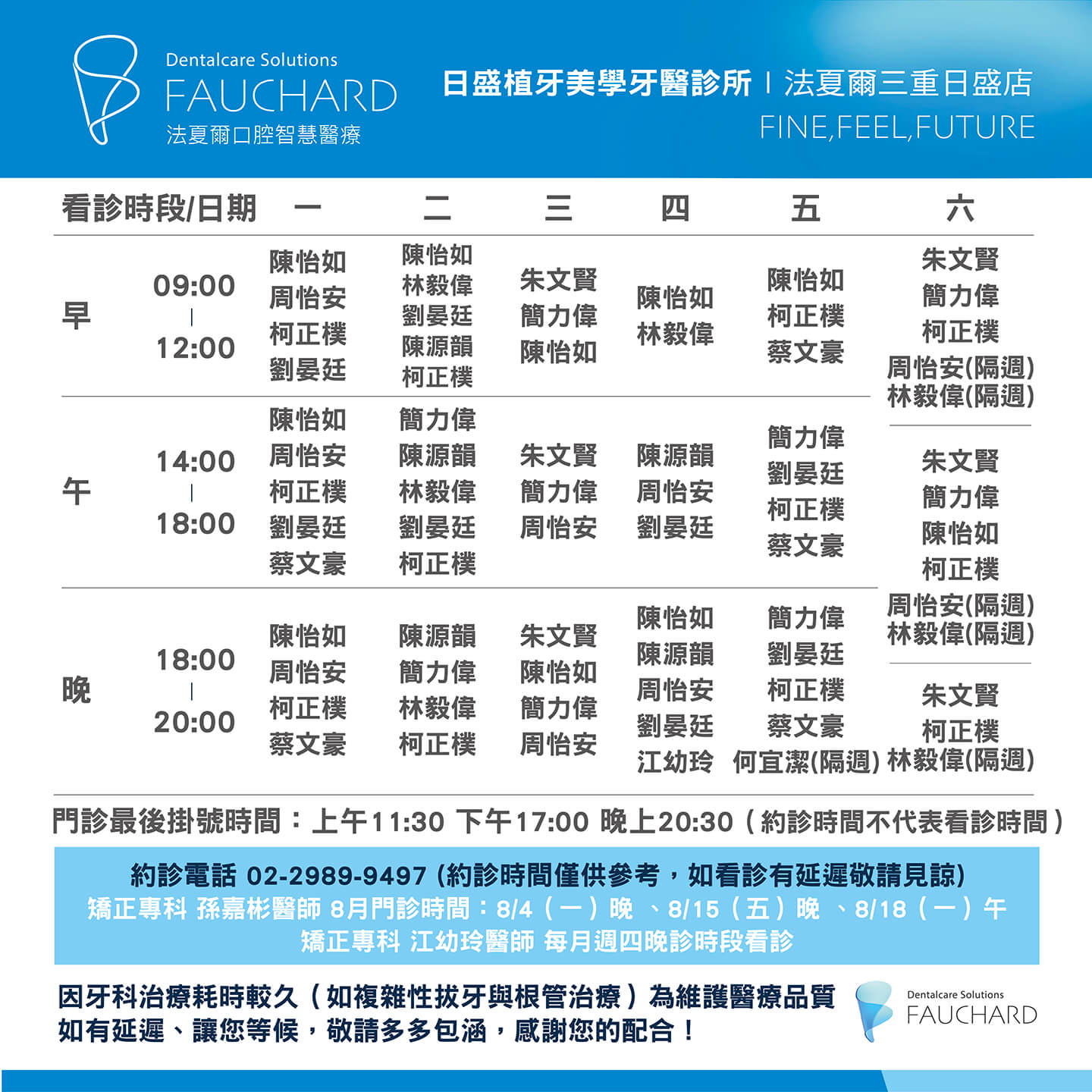 醫療團隊由近30年資深牙科背景的台大醫師組成,特於1997年成立「日盛植牙美學牙醫診所」,於2024年統整旗下法夏爾口腔智慧醫療牙醫診所品牌,成為「日盛植牙美學牙醫診所 (法夏爾三重日盛店)」。